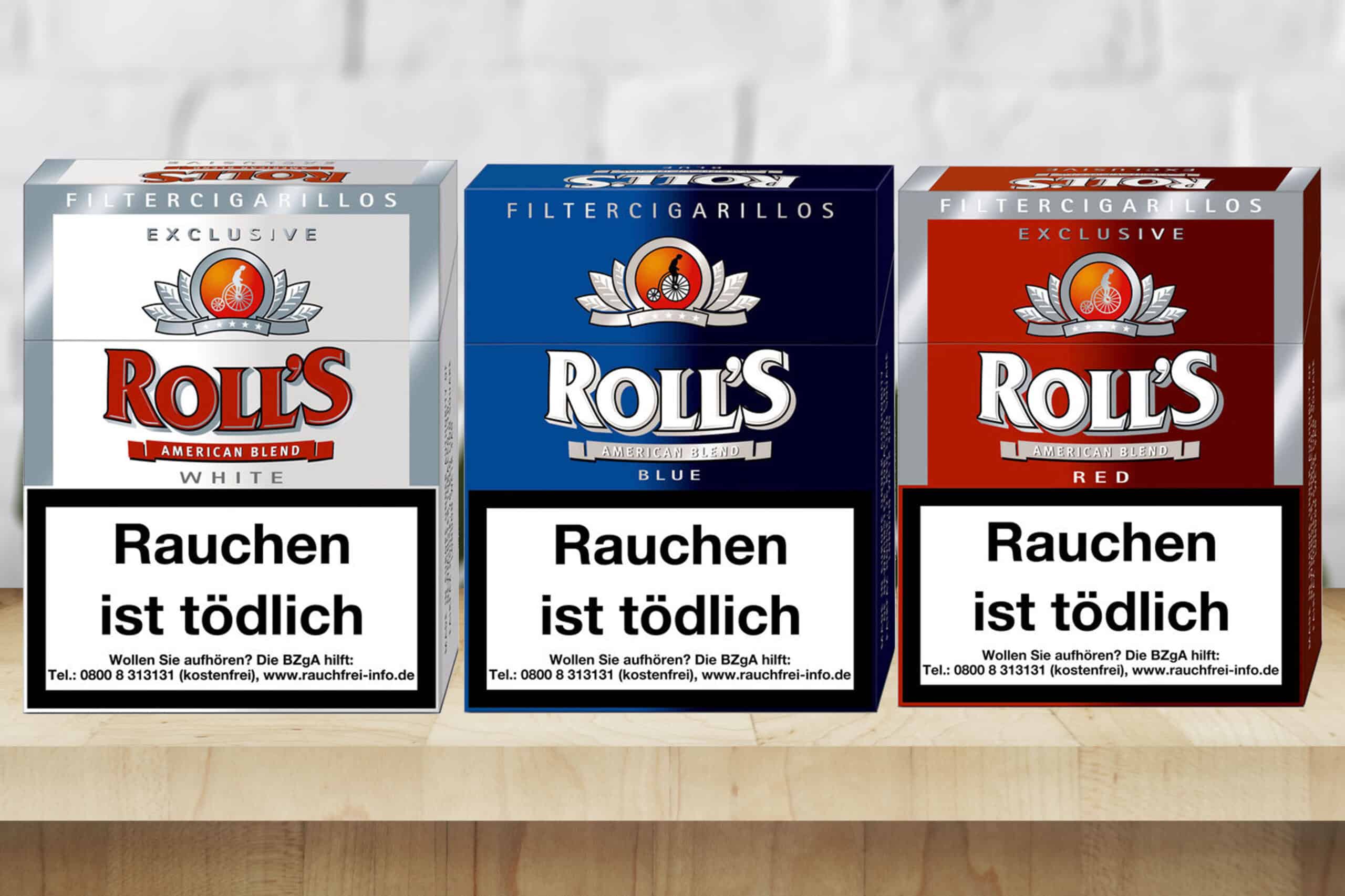 In der Tat bietet die Rolls heute einige verschiedene Sorten und Varianten ihrer berühmten Marke an. So bekommt ein jeder Raucher die Möglichkeit, sein ganz bestimmtes Lieblingsprodukt innerhalb des Sortiments zu entdecken. Während es einigen Spielraum auch in Bezug auf die Zigarillos- und Packungsgrößen gibt (von normalen Schachteln mit 23 Zigaretten über die wahnwitzigen, ganze3 Sorten in verschiedenen Stärken), muss man dabei vor allem zwischen den drei Haupt-Sorten unterscheiden – Rolls Blue, Rolls Red und Rolls White.