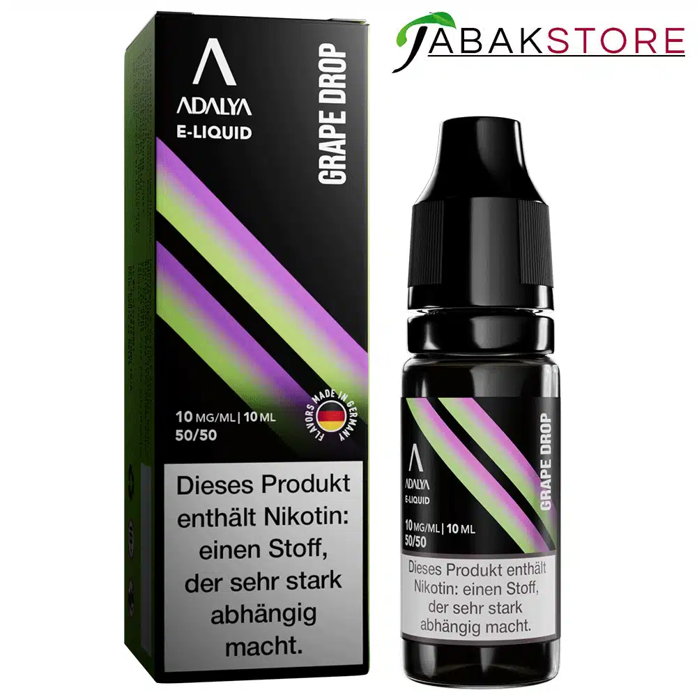 Die Adalya Grape Drop Liquids sind mit 10mg Nikotin erhältlich und werden in einem modernen und handlichen 10ml Fläschchen geliefert.