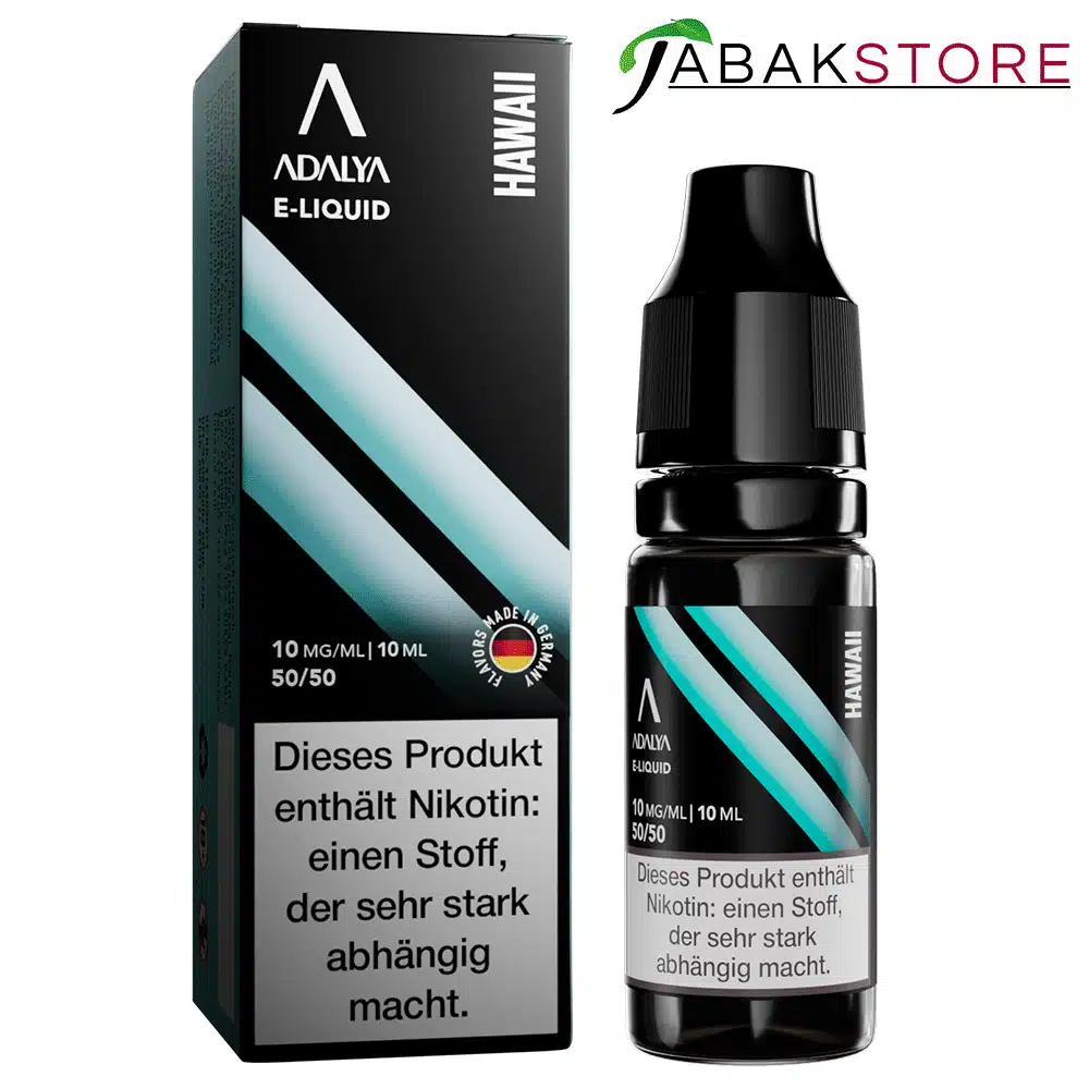 Die Adalya Hawaii Liquids sind mit 10mg Nikotin erhältlich und werden in einem modernen und handlichen 10ml Fläschchen geliefert.