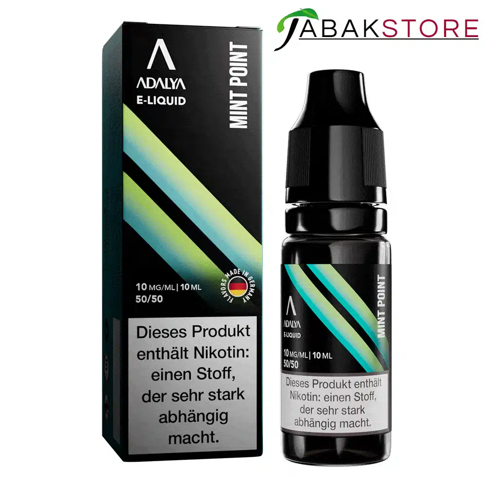 Die Adalya Mint Point Liquids sind mit 20mg Nikotin erhältlich und werden in einem modernen und handlichen 10ml Fläschchen geliefert.