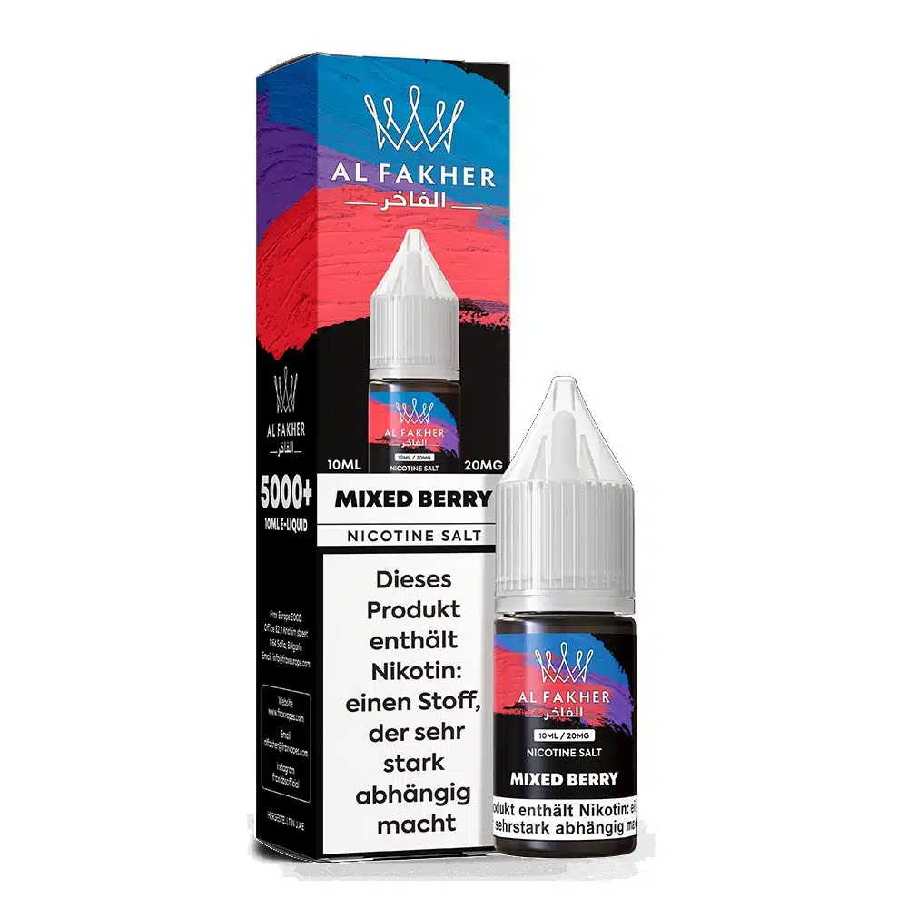 20mg Nikotin machen die Al Fakher Mixed Berry Liquids perfekt für alle Dampfer, die auf einen intensiven Geschmack und eine starke Nikotinsättigung setzen.