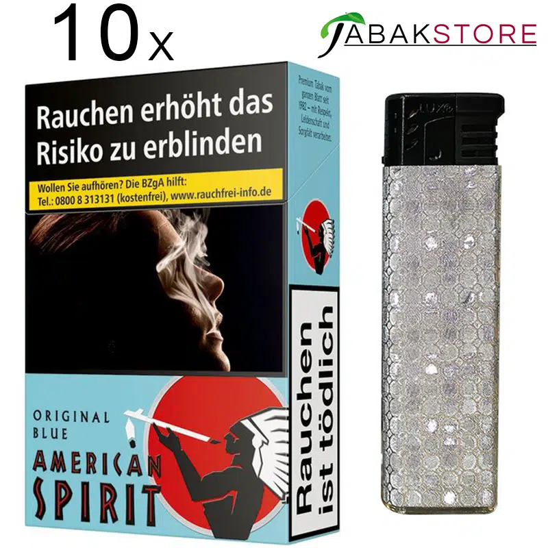 American Spirit Blau Zigaretten + Sturmfeuerzeug Bundle