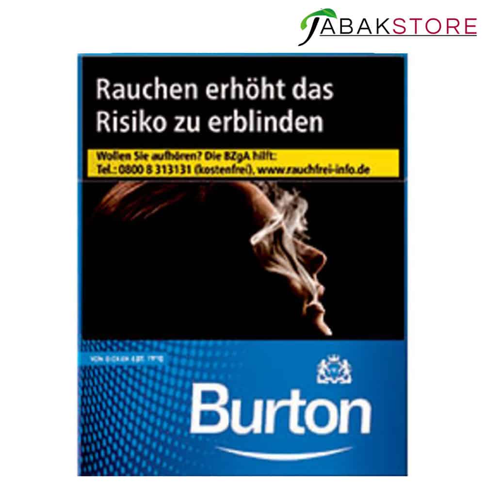 Schon seit langer Zeit können Sie die beliebte blaue Variante der Zigaretten der Marke Burton auch bei uns im Onlineshop von Tabakstore.de kaufen. Hierbei handelt es sich um die leichtere der verfügbaren Sorten aus dem Portfolio der Marke – die sich für alle Raucher und Raucherinnen eignet, die sich ein dezentes, aber dennoch ausreichend intensives Aroma wünschen.