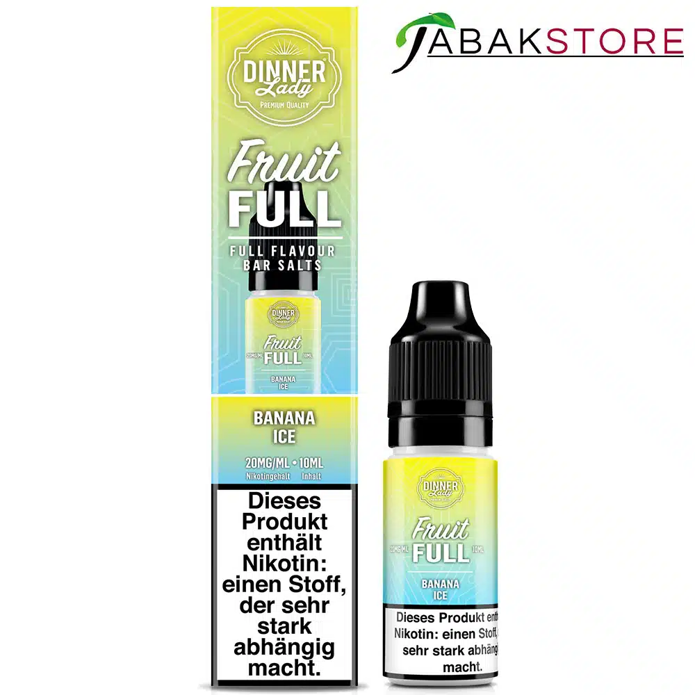 Die Dinner Lady Banana Ice Liquids werden mit 20mg Nikotin und 10ml Liquid geliefert.