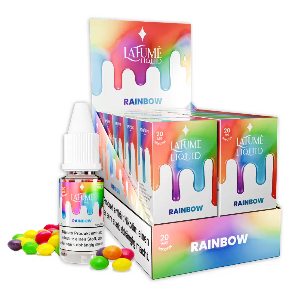 Die La Fume Rainbow Liquids verzaubern die Geschmacksknospen mit dem süßen Genuss von fruchtigen Skittles.