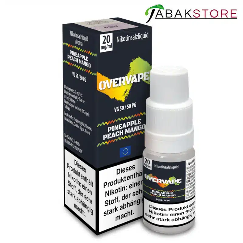 Du möchtest Dein Dampferlebnis auf das nächste Level bringen? Dann sind die Overvape Pineapple Peach Mango Liquids genau das Richtige für Dich!